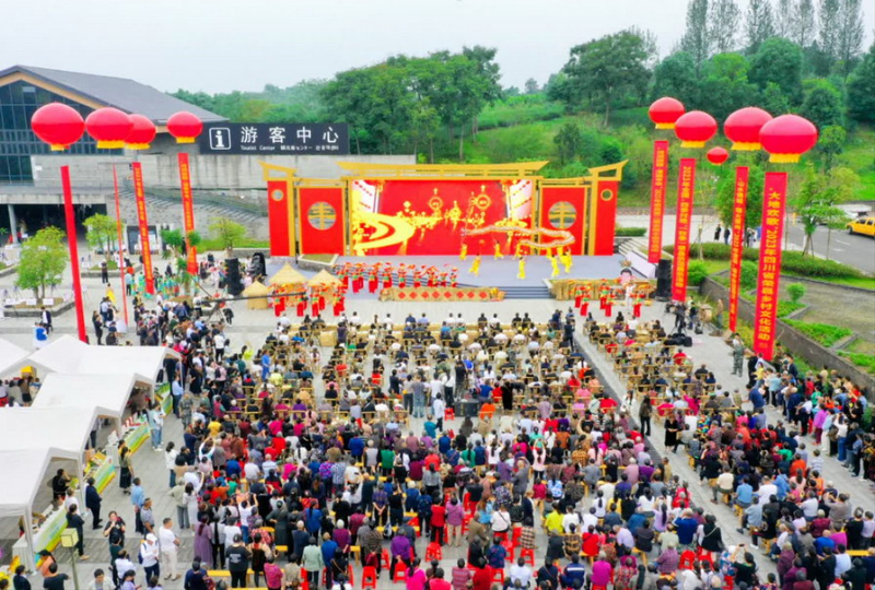 蔡家堰村依托“玉章故里”景区举办公益演出、文化下乡活动。四川文明网供图