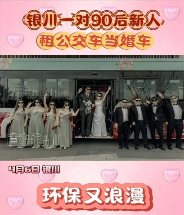 近日,宁夏回族自治区银川市一对“90后”新人“租公交车当婚车”短视频被文明宁夏、直播银川等多个媒体平台转发热议,轻松而不失温馨的方式增强了婚礼的仪式感,传递了文明婚俗的积极信号。
