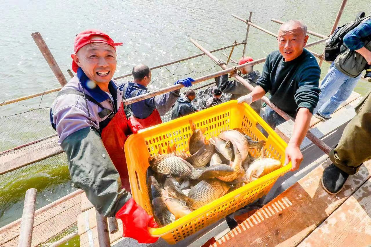 养前村“丰渔节”为村民分鱼现场。张同波 摄