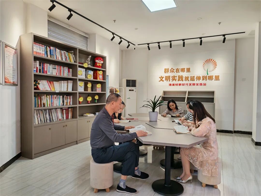 村民在清溪村新时代文明实践站内阅读
