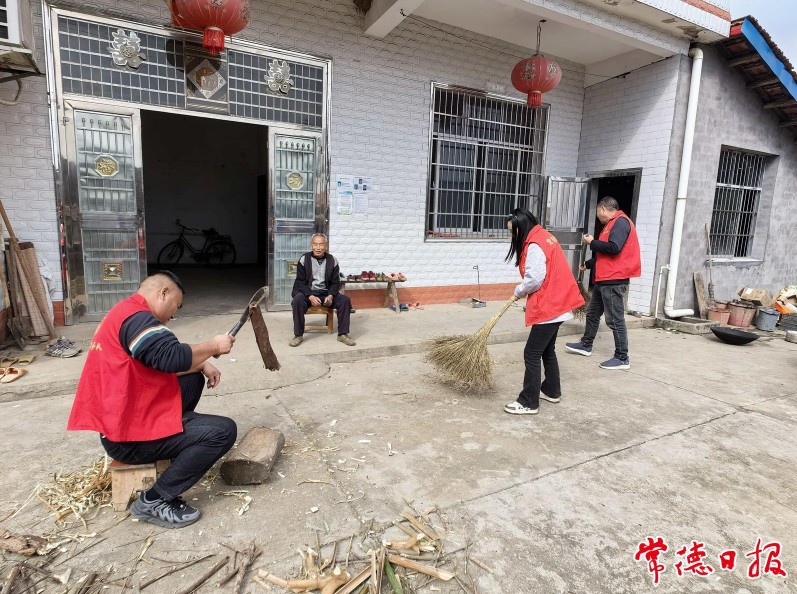 党员志愿者上门为老人服务。