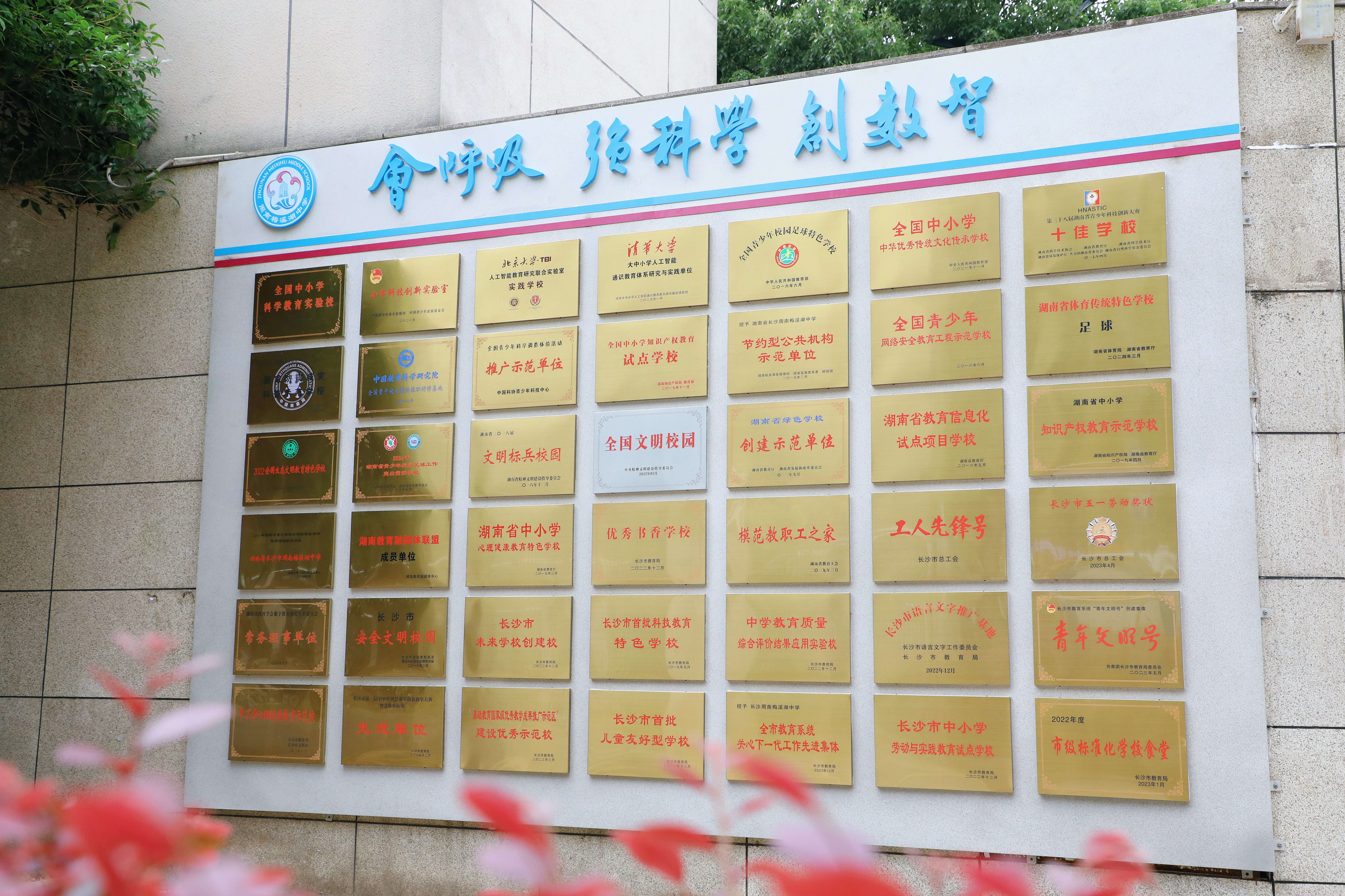 如今,长沙市周南梅溪湖中学拥有七十多个教学班、三千余名学生,教师队伍里正高级、特级与省级名师工作室星光成列;学生在讲演、征文、朗诵中屡有收获,体育与科创并进,女足队在全国赛场折桂……这些可见的荣光,真正的底色却来自看似寻常的日常:把椅子轻推回位;在队列里为后一位同学留出半步;在操场边捡起那张纸;在公共场合降低音量;在一次争执里学会慢一点、柔一点。是把梅文化的坚韧与高洁、红色文化的信念与担当、传统文化的礼乐之美,做进课程与生活,沉淀为一份可托付的气质。