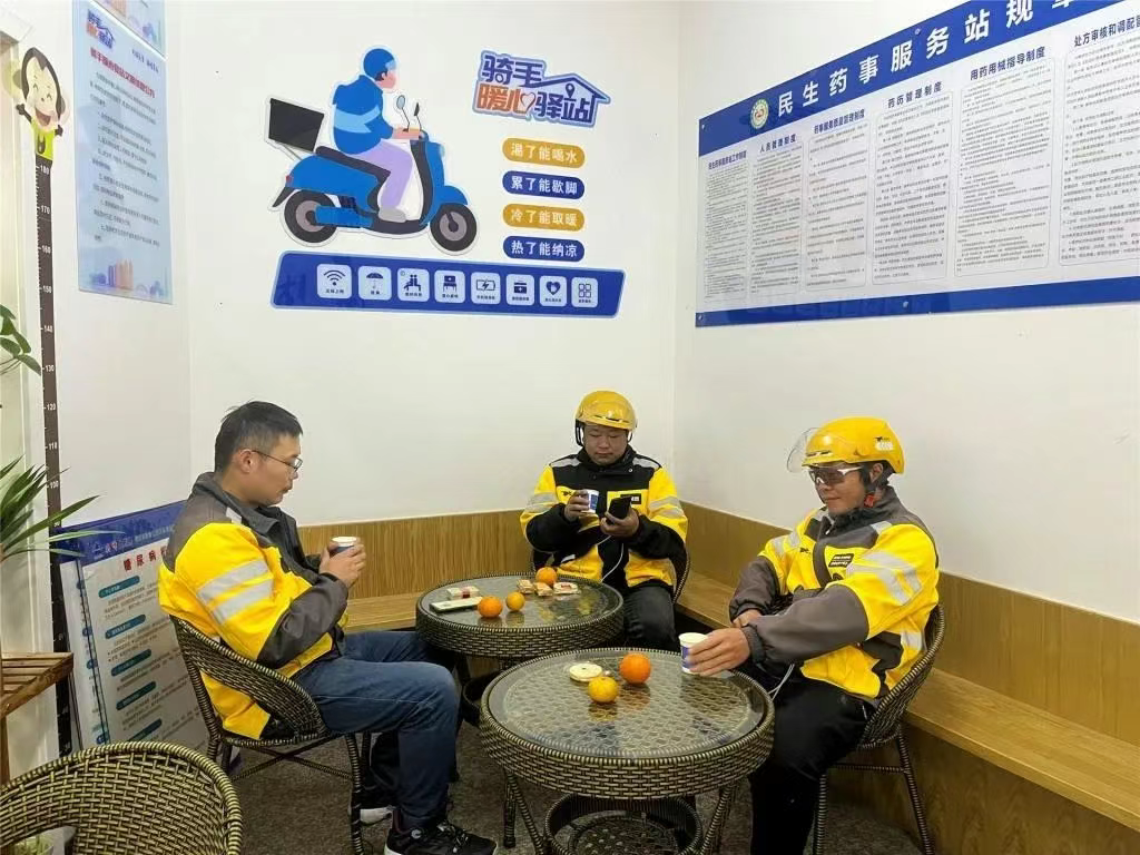 “微服务”精准对接需求,为户外劳动者献上温暖。2024年底,婺城区城中街道尖峰骑手暖心驿站挂牌成立,这也标志着婺城区正式建成10家外卖骑手暖心驿站。暖心驿站内部配备有微波炉、空调、冰箱、电子血压计、医药箱等设备,可为骑手提供手机充电、无线上网、基本医疗救护、饭菜加热等服务,其中4家实行24小时对外开放,部分驿站还将引入专业力量,适时开展法律咨询、安全培训、夏送清凉、冬送温暖等活动,满足骑手个性化需求。